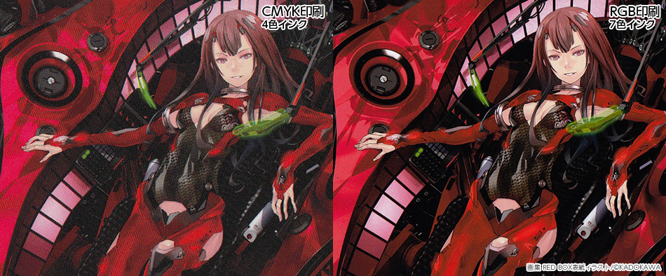 RGB(sRGB/Adobe RGB)対応プリンタなので、CMYKに変換した時の色喪失が少なく済みます。